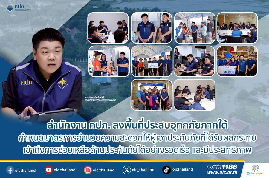 คปภ. ลงพื้นที่ประสบอุทกภัยภาคใต้ กำหนดมาตรการอำนวยความสะดวกให้ผู้เอาประกันภัยที่ได้รับผลกระทบ