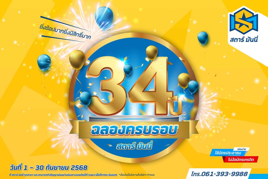 บมจ.สตาร์ มันนี่ (STARM) จัดหนักฉลองครบรอบ 34 ปี ยกทัพเครื่องใช้ไฟฟ้ามาลดราคาสูงสุดถึง 50% พร้อมสิทธิ์ลุ้นของรางวัลใหญ่ มูลค่ารวมกว่า 340000 บาท แถมยังมีของพรีเมียมอีกเพียบ สำหรับลูกค้าที่ช้อปครบตามเงื่อนไข...โปรแรงนี้จัดเต็มตั้งแต่วันที่ 1–30 ก.ย. 2568 ที่ “สตาร์ มันนี่” ทุกสาขา บอกเลยว่าเป็นเจ้าของเครื่องใช้ไฟฟ้าง่ายมาก ใช้แค่บัตรประชาชนใบเดียวก็ผ่อนสบายได้ทันที! ที่พิเศษกว่านั้น ลูกค้าภาคตะวันออก ยังสามารถทำสัญญาผ่อนชำระผ่านระบบออนไลน์ได้แล้วด้วย...งานนี้เรียกว่า “โปรปัง” ที่ STARM เสิร์ฟให้ คาดดันยอดขายครึ่งปีหลังทะยานแรงสมการรอคอยแน่นอนคร้าา!!