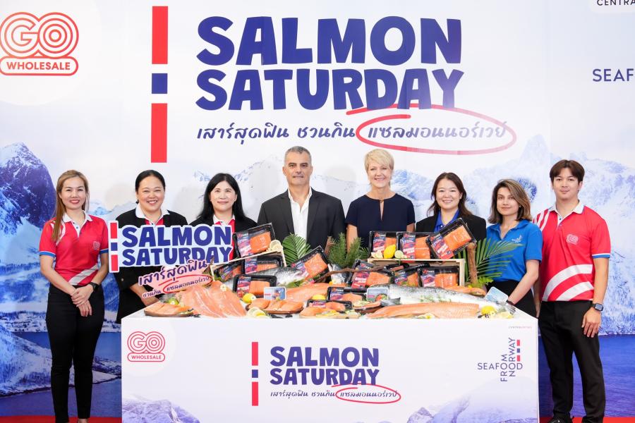 ในเมืองไทย กระแสบริโภคแซลมอนยังแรงไม่แผ่ว ล่าสุด โก โฮลเซลล์ (GO WHOLESALE) ศูนย์ค้าส่งวัตถุดิบอาหาร ที่มีความสดใหม่ตลอดเวลาเพื่อผู้ประกอบการ ภายใต้การดำเนินงานของ บริษัท เซ็นทรัล ฟู้ด โฮลเซลล์ จำกัด ในเครือเซ็นทรัล รีเทล ร่วมกับ Seafood from Norway จัดแคมเปญ “Salmon Saturday : เสาร์สุดฟิน ชวนกิน แซลมอนนอร์เวย์” กระตุ้นการบริโภคแซลมอนนอร์เวย์ในเมืองไทยที่มีความนิยมและเติบโตอย่างต่อเนื่อง โดย นายริคาร์โด้ เบารอตโต้ ประธานเจ้าหน้าที่บริหาร ธุรกิจเซ็นทรัล ฟู้ด โฮลเซลล์ ประเทศไทย และนางซันนี่ ซิดิค รองประธานเจ้าหน้าที่บริหาร สายงานบริหารสินค้าธุรกิจค้าส่ง ให้การต้อนรับ นางสาวโอซฮิลด์ นัคเค่น ผู้อำนวยการภูมิภาคเอเชียตะวันออกเฉียงใต้ สภาอุตสาหกรรมอาหารทะเลนอร์เวย์ (NSC) ที่มาเปิดแคมเปญสำคัญนี้ ณ โก โฮลเซลล์ สาขาศรีนครินทร์