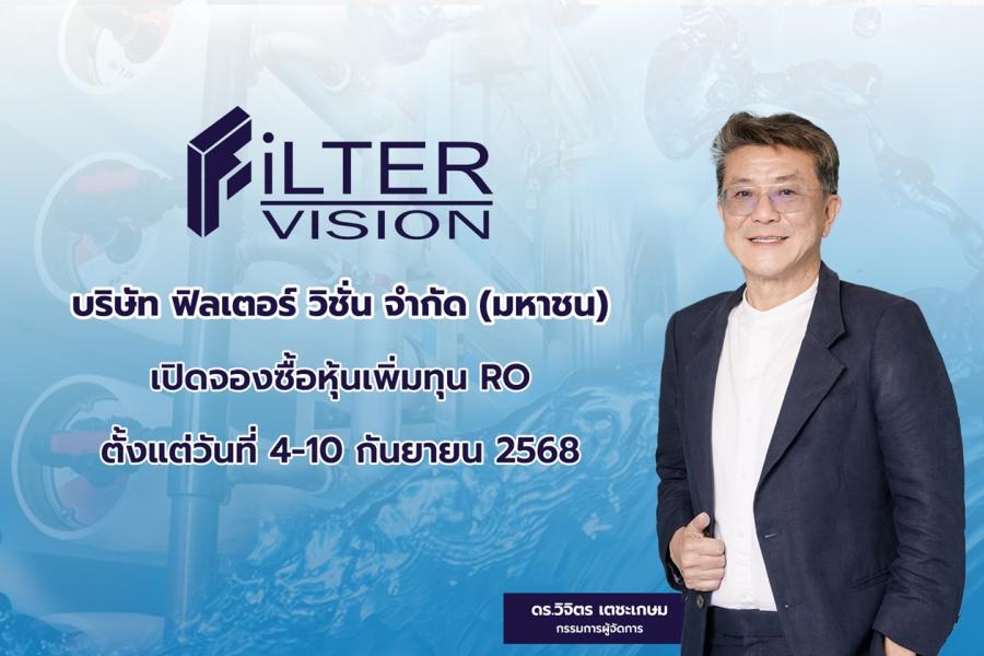 นายวิจิตร เตชะเกษม กรรมการผู้จัดการ บริษัท ฟิลเตอร์ วิชั่น จำกัด (มหาชน) หรือ FVC เปิดเผยว่า ตามมติที่ประชุมวิสามัญผู้ถือหุ้นอนุมัติให้มีการเพิ่มทุนจดทะเบียนใหม่ จำนวน 1280.50 ล้านบาท จากทุนจดทะเบียนเดิม จำนวน 282571479.50 บาท เป็นทุนจดทะเบียนใหม่ จำนวน 1563071479.50 บาท โดยการออกหุ้นสามัญเพิ่มทุน จำนวนไม่เกิน 2561 ล้านหุ้น มูลค่าที่ตราไว้หุ้นละ 0.50 บาท เพื่อรองรับการจัดสรรหุ้นสามัญเพิ่มทุนให้แก่ผู้ถือหุ้นเดิมของบริษัทฯ ตามสัดส่วน การถือหุ้น (Right offering) ในอัตราส่วน 1 หุ้นเดิม ต่อ 4.5316 หุ้นใหม่ ในราคาเสนอขายหุ้นละ 0.50 บาท โดยได้กำหนดระยะเวลาจองซื้อ ระหว่างตั้งแต่วันที่ 4-5 และ 8-10 กันยายน 2568 (รวม 5 วันทำการ)