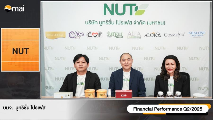 นายพุทธิวัฒน์ กิตติภานุวัฒน์ (กลาง) รองประธานเจ้าหน้าที่บริหาร พร้อมด้วย นางสาวศิริพร ฉุดพิมาย (ขวา) ประธานเจ้าหน้าที่ฝ่ายการเงิน และ นายวสุพล ใจเกี๋ยง (ซ้าย) ผู้อำนวยการฝ่ายเทคโนโลยีสารสนเทศ บริษัท นูทริชั่น โปรเฟส จำกัด (มหาชน) หรือ NUT ร่วมกิจกรรมบริษัทจดทะเบียนพบนักลงทุน Opportunity Day ไตรมาส 2/2568 โดยให้ข้อมูลผลการดำเนินงานในช่วงครึ่งปีแรก 2568 มีรายได้จากการขายรวม 529.45 ล้านบาท กำไรสุทธิ 43.71 ล้านบาท และ ทิศทางการดำเนินงานช่วงครึ่งปีหลัง 2568 เดินหน้าพัฒนาผลิตภัณฑ์ เสริมความแข็งแกร่งด้านอีคอมเมิร์ซ เตรียมดันโครงการ “NUT Voice” ยกระดับการสื่อสารและบริการ ด้วยการใช้ฐานข้อมูลระดับ Big Data เพื่อเพิ่มฐานลูกค้ากลุ่มซื้อประจำและสร้างการเติบโตระยะยาว
