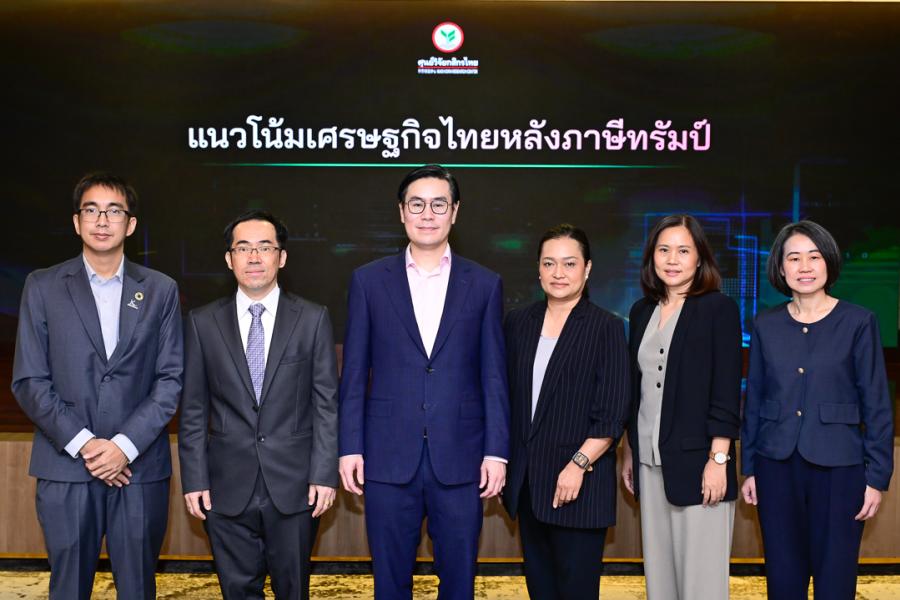 นางสาวณัฐพร ตรีรัตน์ศิริกุล รองกรรมการผู้จัดการ บริษัท ศูนย์วิจัยกสิกรไทย จำกัด ระบุว่า ศูนย์วิจัยกสิกรไทยปรับประมาณการเศรษฐกิจไทยปี 2568 มาอยู่ที่ 1.8% จาก 1.5% จากแรงหนุนการเร่งส่งออกไปยังสหรัฐฯ ก่อนมาตรการภาษีฯ ตามมาตรา 232 และภาษีสินค้าอ้อมผ่านประเทศที่สาม (Transshipment) มีผลบังคับใช้ ทั้งนี้ การส่งออกที่ชะลอตัวลงน้อยกว่าที่คาดในช่วงครึ่งปีหลัง 2568 ส่งผลให้ความเสี่ยงที่เศรษฐกิจไทยจะเข้าสู่ภาวะถดถอยทางเทคนิคนั้น ลดต่ำลง อย่างไรก็ตาม เศรษฐกิจไทยในระยะข้างหน้า ยังมีความท้าทายจากผลกระทบทางตรงและทางอ้อมจากภาษีสหรัฐฯ การท่องเที่ยวที่ชะลอตัว และปัจจัยทางการเมือง ที่ยังต้องติดตาม ขณะที่ ทิศทางอัตราดอกเบี้ยนโยบายในระยะที่เหลือของปี 2568 นั้น มองว่า กนง.มีโอกาสปรับลดอัตราดอกเบี้ยนโยบายลงอีก 1 ครั้งในปีนี้ ซึ่งมาควบคู่กับนโยบายกระตุ้นเศรษฐกิจเฉพาะหน้าของรัฐบาลใหม่