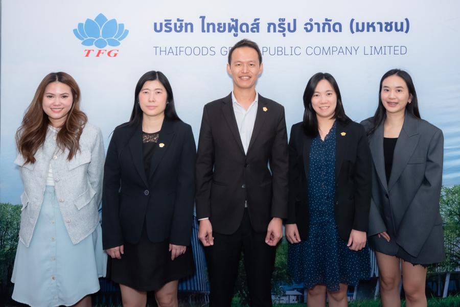 นายเพชร นันทวิสัย ประธานเจ้าหน้าที่ฝ่ายปฏิบัติการ นางสาวศิริลักษณ์ ตั้งวิบูลย์พาณิชย์ ประธานเจ้าหน้าที่ฝ่ายบัญชีและการเงิน และนางสาวช่อมาศ เหลืองคำชาติ ผู้จัดการฝ่ายอาวุโสบริหารการลงทุนและนักลงทุนสัมพันธ์ บริษัท ไทยฟู้ดส์ กรุ๊ป จำกัด (มหาชน) (TFG) ถ่ายภาพร่วมกับนักวิเคราะห์หลักทรัพย์ ภายหลังจัดงาน Analyst Meeting โดย TFG ส่งสัญญาณครึ่งปีหลังโตแกร่ง เร่งขยายร้าน “ไทยฟู้ดส์ เฟรซ มาร์เก็ต” ปรับเป้าเพิ่มเป็น 620 สาขา ส่งผลให้ปี 2569 จำนวนสาขาแตะ 850 สาขา รองรับความต้องการผู้บริโภคและเพิ่มมาร์จิ้น สร้างการเติบโตแข็งแกร่ง ทิศทางธุรกิจสดใสจากยอดขายไก่และสุกรที่เพิ่มขึ้นทั้งตลาดในประเทศและต่างประเทศ พร้อมเข้าช่วง High Season ขณะที่ราคาวัตถุดิบต้นทุนมีแนวโน้มปรับตัวลดลง มั่นใจว่าจะผลักดันรายได้ปีนี้เติบโตมากกว่า 15% สร้างสถิติสูงสุดใหม่ต่อเนื่อง ซึ่งงานดังกล่าวจัดขึ้นที่ อาคารชินวัตร 3 ณ ห้องประชุมชั้น 9 Room 2 เมื่อเร็วๆ นี้
