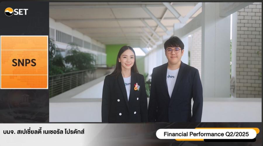 ดร.ธีรญา กฤษฎาพงษ์ ประธานเจ้าหน้าที่บริหาร พร้อมด้วย นายอชิตเดช อาชาไพโรจน์ ประธานเจ้าหน้าที่ฝ่ายบัญชีและการเงิน บริษัท สเปเชี่ยลตี้ เนเชอรัล โปรดักส์ จำกัด (มหาชน) หรือ SNPS ร่วมให้ข้อมูลผลการดำเนินงานไตรมาส 2 ประจำปี 2568 ในงานบริษัทจดทะเบียนพบผู้ลงทุน (Opportunity Day) จัดโดยตลาดหลักทรัพย์แห่งประเทศไทย โดยผลการดำเนินงานงวดครึ่งปีแรกของปี 2568 บริษัทมีกำไรสุทธิ 47.17 ล้านบาท เพิ่มขึ้น 60.72% เมื่อเทียบกับช่วงเดียวกันของปีก่อน และมีรายได้รวม 265.92 ล้านบาท เพิ่มขึ้น 22.65% เมื่อเทียบกับช่วงเดียวกันของปีก่อน โดยบริษัทได้ตั้งเป้าหมายการเติบโตในปี 2025 ไว้ที่ 15–30% นอกจากผลประกอบการที่โดดเด่นแล้ว SNPS ยังเดินหน้าขับเคลื่อนด้วยงานวิจัยและพัฒนา (R&D) ที่ได้รับการสนับสนุนจากกองทุนวิจัยและพันธมิตรเพื่อสร้างนวัตกรรมที่มีความคุ้มค่าและยั่งยืน ล่าสุดบริษัทได้เปิดตัวผลิตภัณฑ์สีธรรมชาติภายใต้แบรนด์ “Naturebrill” พร้อมขยายเวทีสู่ระดับโลกด้วยการนำนวัตกรรมไปจัดแสดงในงานนิทรรศการสำคัญในต่างประเทศร่วมกับคู่ค้า อาทิ ฝรั่งเศส สเปน จีน อินโดนีเซีย และอินเดีย อีกทั้งยังให้ความสำคัญกับการดำเนินธุรกิจบนหลัก ESG ด้วยกลยุทธ์ที่ชัดเจนและการดำเนินงานที่โปร่งใส SNPS ยังคงมุ่งมั่นสร้างการเติบโตอย่างมั่นคง ควบคู่กับความยั่งยืน เพื่อก้าวสู่การเป็นผู้นำด้านนวัตกรรมธรรมชาติระดับสากล