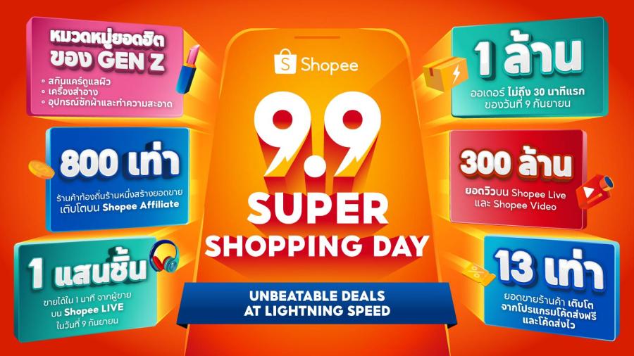 Shopee 9.9 มอบส่วนลดสูงถึง 2 พันล้านบาท กระตุ้นยอดขายท้องถิ่นโต 9 เท่า พร้อมทำสถิติส่งไว 25 นาที