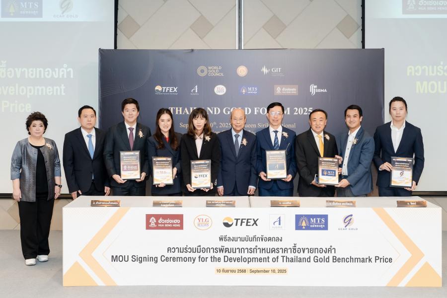 นายชัยวัฒน์ สามัคคีนิชย์ (ขวา) ประธานเจ้าหน้าที่บริหาร บริษัท จีแคป จำกัด หรือ GCAP GOLD ผู้นำด้านทองคำรายใหญ่ของไทย ที่มีประสบการณ์และความเชี่ยวชาญในการนำเข้าส่งออกทองคำแท่งของไทยกว่า 80 ปี ร่วมลงนามบันทึกข้อตกลงความร่วมมือเพื่อพัฒนาการกำหนดราคาทองคำ ภายในงาน Thailand Gold Forum 2025 ซึ่งจัดโดย สมาคมค้าทองคำ ร่วมกับ สภาทองคำโลก (World Gold Council) และสถาบันวิจัยและพัฒนาอัญมณีและเครื่องประดับแห่งชาติ (องค์การมหาชน) โดยมี ดร.รินใจ ชาครพิพัฒน์ กรรมการผู้จัดการ บริษัท ตลาดสัญญาซื้อขายล่วงหน้า (ประเทศไทย) จำกัด (มหาชน) (TFEX) สนับสนุนการพัฒนาราคาอ้างอิงทองคำของไทย (Gold Benchmark Price) นอกจากนี้ยังมีผู้ประกอบการค้าทองคำชั้นนำ อย่าง บริษัท ออสสิริส จำกัด บริษัท ห้างขายทองฮั่วเซ่งเฮง จำกัด บริษัท เอ็มทีเอส แคปปิตอล จำกัด และ บริษัท วายเเอลจี บูลเลี่ยน อินเตอร์เนชั่นเเนล จำกัด ร่วมลงนามความร่วมมือในครั้งนี้ด้วย งานดังกล่าวจัดขึ้น ณ ศูนย์การประชุมแห่งชาติสิริกิติ์ กรุงเทพฯ