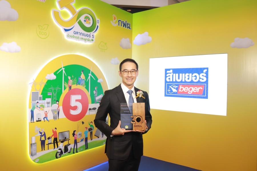 ภายในงานได้มีพิธีมอบโล่ขอบคุณแก่พันธมิตรโครงการฉลากประหยัดพลังงาน รวมทั้งสิ้น 54 หน่วยงาน โดย ดร.วรวัฒน์ ชัยยศบูรณะ ประธานเจ้าหน้าที่บริหาร บริษัท เบเยอร์ จำกัด เข้ารับมอบโล่ในนามเบเยอร์ ซึ่งนับเป็น บริษัทสีรายเดียวในประเทศไทย ที่ได้รับเกียรติในครั้งนี้ ตอกย้ำความมุ่งมั่นของเบเยอร์ในการพัฒนาผลิตภัณฑ์ที่ช่วยอนุรักษ์พลังงานและรักษ์สิ่งแวดล้อมอย่างแท้จริง โครงการฉลากประหยัดพลังงานเบอร์ 5 ของ พพ. และ กฟผ. นับเป็นกลไกสำคัญที่ช่วยสร้างมาตรฐานการใช้พลังงานอย่างมีประสิทธิภาพ และช่วยให้ประเทศไทยเดินหน้าไปสู่เป้าหมาย Carbon Neutrality ปี 2050 โดยความร่วมมือจากทุกภาคส่วน รวมถึงพันธมิตรเอกชนอย่างเบเยอร์ จะเป็นแรงขับเคลื่อนสำคัญสู่การเปลี่ยนผ่านด้านพลังงานอย่างยั่งยืน