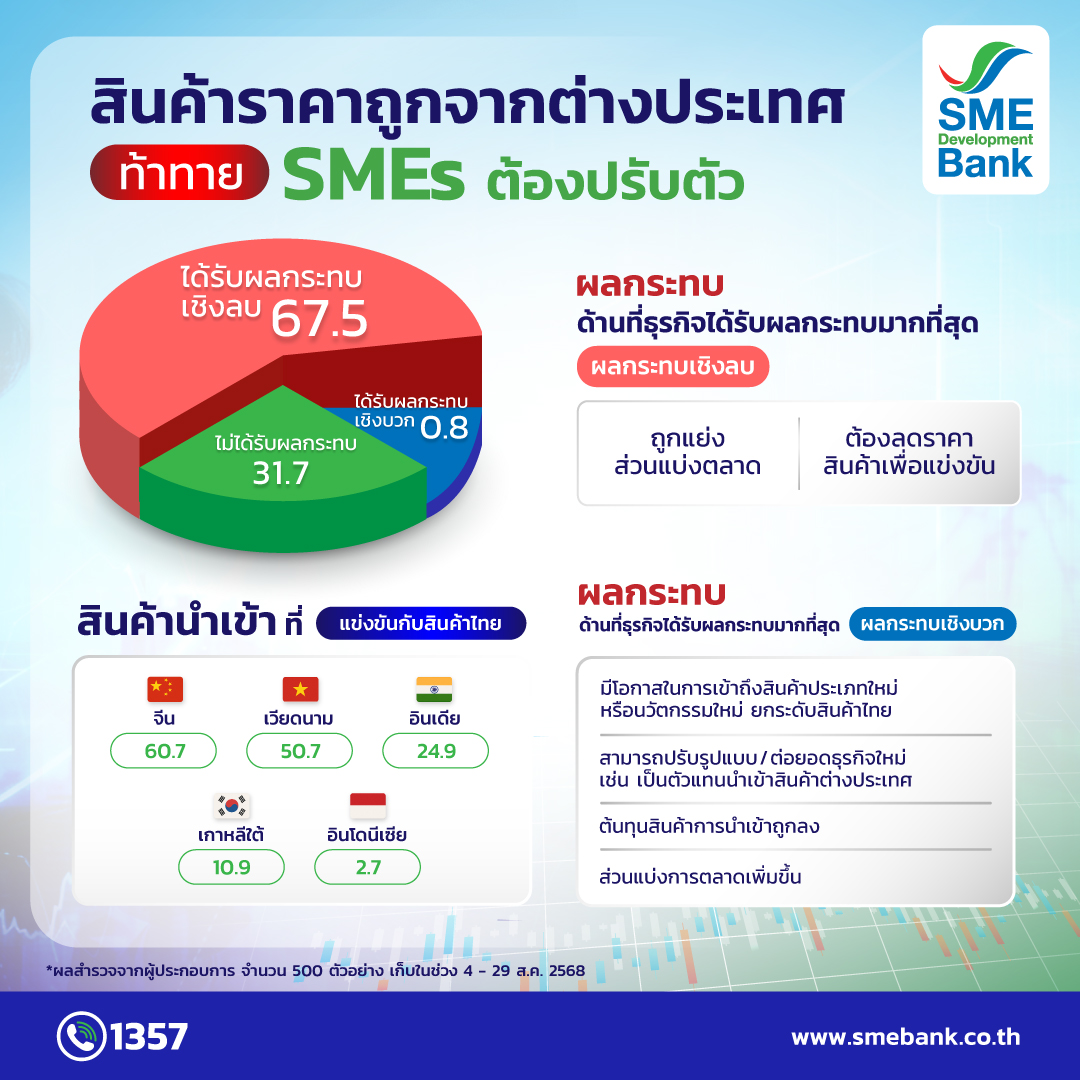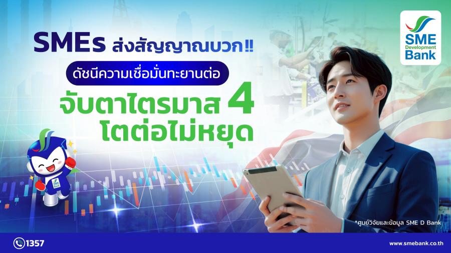 SME D Bank เผยดัชนีเชื่อมั่นเอสเอ็มอีคาดการณ์ Q4/68 ขยายตัว อานิสงส์นโยบายรัฐกระตุ้นเศรษฐกิจ