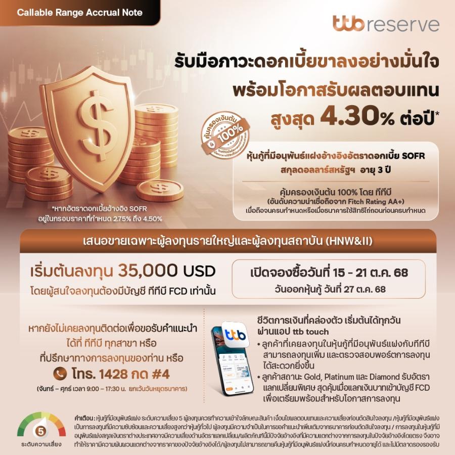 ทีทีบี เปิดตัวฟีเจอร์ใหม่ “จองซื้อหุ้นกู้ที่มีอนุพันธ์แฝง” ผ่านแอป ttb touch