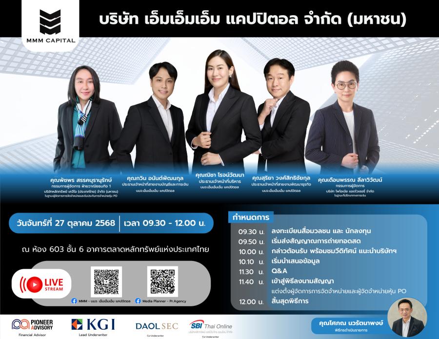 “MMM” ลุย Roadshow 27 ต.ค.นี้ ก่อนเปิดขายหุ้น PO 64.2 ล้านหุ้น เร็วๆ นี้