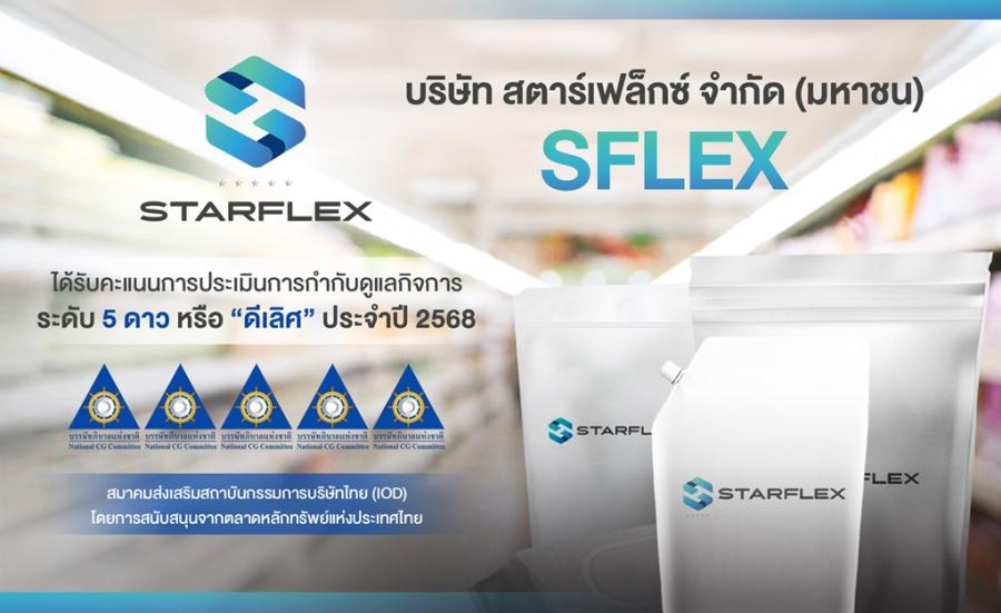 บริษัท สตาร์เฟล็กซ์ จำกัด (มหาชน) หรือ SFLEX ผู้ผลิตและจำหน่ายบรรจุภัณฑ์พลาสติกชนิดอ่อน (Flexible Packaging) ชั้นนำของประเทศ ได้รับการประเมินการกำกับดูแลกิจการบริษัทจดทะเบียนไทย ประจำปี 2568 (Corporate Governance Report of Thai Listed Companies 2025 : CGR) ในระดับ 5 ดาว หรือ “ดีเลิศ” จากสมาคมส่งเสริมสถาบันกรรมการบริษัทไทย (IOD) โดยได้รับการสนับสนุนจาก ตลาดหลักทรัพย์แห่งประเทศไทย