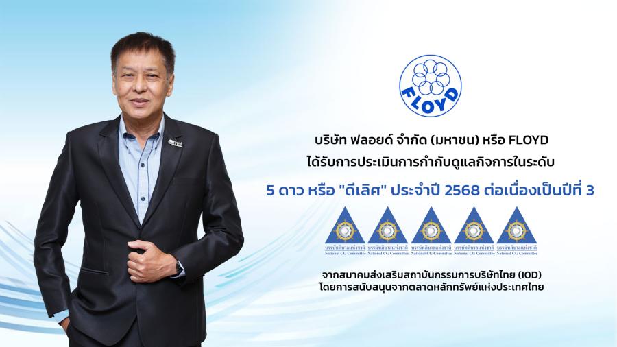 FLOYD ได้รับการประเมิน CGR ในเกณฑ์ “ดีเลิศ” ระดับ 5 ดาว ประจำปี 2568 ต่อเนื่องเป็นปีที่ 3