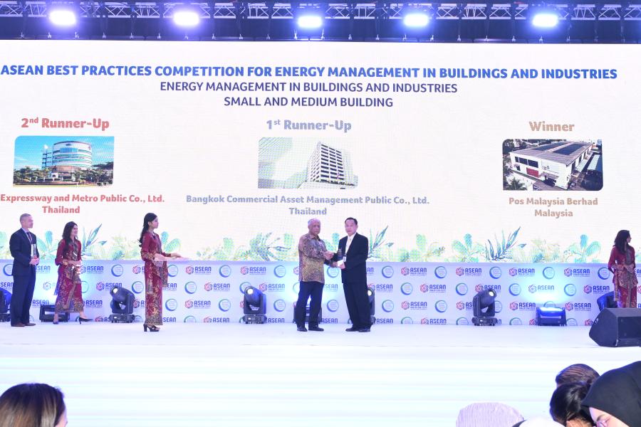 พิธีมอบรางวัลจัดขึ้นภายในงาน ASEAN Energy Business Forum ครั้งที่ 25 ซึ่งจัดโดย ศูนย์พลังงานอาเซียน ( ASEAN Centre for Energy: ACE ) เมื่อวันที่ 16 ตุลาคม 2568 ณ ศูนย์การประชุมกัวลาลัมเปอร์ ( Kuala Lumpur Convention Centre: KLCC ) กรุงกัวลาลัมเปอร์ ประเทศมาเลเซีย โดยมี นายไพโรจน์ บุญยิ่ง ผู้จัดการกลุ่มอาคารและสถานที่ เป็นผู้แทนบริษัทขึ้นรับรางวัล ในการนี้ได้รับเกียรติจาก ดาโต๊ะ ซรี ฮาจี ฟาดิลละห์ บิน ฮาจี ยูซอฟ ( Dato’ Sri Haji Fadillah bin Haji Yusof ) รองนายกรัฐมนตรี และรัฐมนตรีว่าการกระทรวงการเปลี่ยนผ่านพลังงานและปฏิรูปน้ำของมาเลเซีย เป็นประธานในพิธี พร้อมด้วย นายประเสริฐ สินสุขประเสริฐ ปลัดกระทรวงพลังงาน ปฏิบัติหน้าที่แทนรัฐมนตรีว่าการกระทรวงพลังงานของประเทศไทย และรัฐมนตรีพลังงานจากประเทศสมาชิกอาเซียนร่วมเป็นเกียรติในงาน