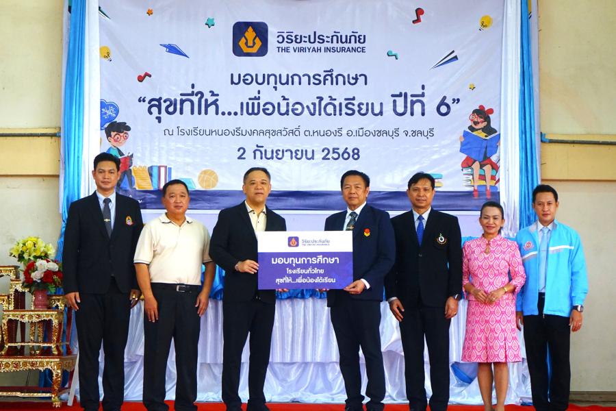 นายเธียรวิทย์ หาญเมธีคุณา ผู้จัดการฝ่ายปฏิบัติการภาค 3 (ภาคตะวันออก) ด้านสาขา และนายพงษ์ทิวา กฤษณพันธุ์ ผู้จัดการฝ่ายปฏิบัติการภาค 3 (ภาคตะวันออก) ด้านศูนย์ปฏิบัติการสินไหมทดแทน บริษัท วิริยะประกันภัย จำกัด (มหาชน) เป็นผู้แทนมอบทุนการศึกษา จำนวน 228 ทุน เป็นเงิน 228000 บาท และทุนสนับสนุนสื่อการเรียนรู้ เป็นเงิน 115000 บาท รวมทั้งสิ้น 343000 บาท ภายใต้โครงการ “สุขที่ให้...เพื่อน้องได้เรียน” ปีที่ 6 เพื่อส่งเสริมโอกาสทางการศึกษาให้กับนักเรียนที่มีผลการเรียนดีแต่ขาดแคลนทุนทรัพย์ โดยบริษัทฯ ได้จัดพิธีมอบทุนการศึกษา จำนวน 128 ทุน เป็นเงิน 128000 บาท พร้อมมอบทุนสนับสนุนสื่อการเรียนรู้ เป็นเงิน 70000 บาท แก่โรงเรียนในพื้นที่จังหวัดชลบุรีทั้งหมด 22 แห่ง โดยมี นายวสุพจน์ นออ่อน ผู้อำนวยการโรงเรียนหนองรีมงคลสุขสวัสดิ์ เป็นผู้แทนรับมอบ ณ โรงเรียนหนองรีมงคลสุขสวัสดิ์ ต.หนองรี อ.เมืองฯ จ.ชลบุรี