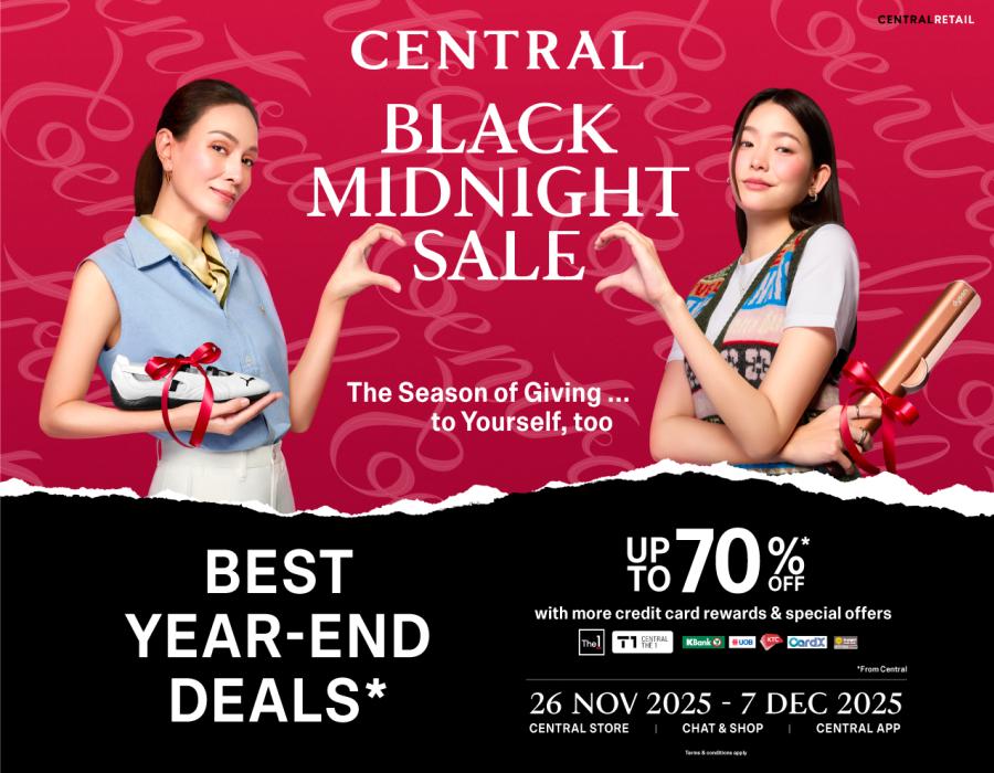 ตลอดทั้งปีเรา “ให้” ของขวัญ คำชม สิ่งดีดีกับคนรอบตัวที่ช่วยเหลือเรามาโดยตลอด แต่ลืมไปหรือไม่ว่า อีกหนึ่งคนที่พาเรามาถึงวันนี้ คือ พลังแห่งความเป็นตัวตน ห้างเซ็นทรัล ในเครือเซ็นทรัล รีเทล เล็งเห็นความสำคัญของศักยภาพแห่งการจุดประกายไอเดียสร้างสรรค์ ที่เริ่มได้จากการรักตนเอง จึงขอชวนทุกท่านช้อปของขวัญให้ตัวเอง พร้อมรับแรงบันดาลใจใหม่ ๆ ในแคมเปญเซลซิกเนเจอร์ครั้งใหญ่ “Central Black Midnight Sale - The Season of Giving … to Yourself too เทศกาลแห่งการให้…ตัวเองบ้างก็ได้” โดยเชื่อมต่อความสะดวกครบครันทุกประสบการณ์ช้อปปิ้งทั้งที่ห้างเซ็นทรัล - ออนไลน์ และช่องทางโซเชียลมีเดีย อัดดีลพิเศษสุดคุ้มค่า “Best Year - End Deals : ดีลที่ดีที่สุด ส่งท้ายปี” ลดสูงสุด 70% เริ่ม 26 พ.ย. 68 – 7 ธ.ค. 68 ตอกย้ำการเป็นเดสติเนชั่นแห่งการช้อปปิ้งที่ครบครัน ครอบคลุม ในทุกไลฟ์สไตล์ ตั้งเป้าโกยยอดขายจากแคมเปญเพิ่ม 15% ใน 12 วัน หนุนปิดไตรมาส 4 / 2568 อย่างสมบูรณ์แบบ