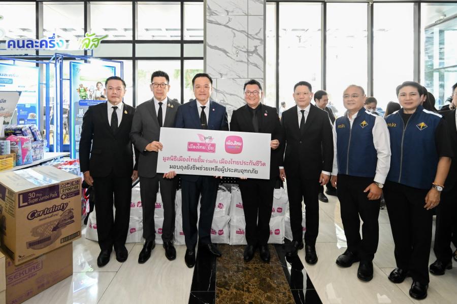 เมืองไทยประกันชีวิต และมูลนิธิเมืองไทยยิ้ม พร้อมด้วยคณะผู้บริหารและพนักงานจิตอาสา ร่วมแรงร่วมใจจัดเตรียมถุงยังชีพและสิ่งของจำเป็น เพื่อส่งมอบความช่วยเหลือเร่งด่วนและกำลังใจให้แก่ผู้ประสบอุทกภัยในหลายพื้นที่ของภาคกลางและภาคใต้ ผ่านศูนย์อำนวยการช่วยเหลือเครือข่ายวายุภักษ์ กระทรวงการคลัง