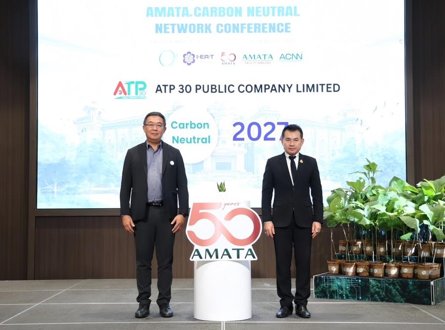นายปิยะ เตชากูล (ซ้าย) ประธานเจ้าหน้าที่บริหาร บริษัท เอทีพี 30 จำกัด (มหาชน) (ATP30) เข้าร่วมพิธีประกาศเจตนารมณ์เครือข่าย Amata Carbon Neutral Network (ACNN) พร้อมรับมอบต้นไม้จาก นายพงศ์ธสิษฐ์ ปิจนันท์ (ขวา) รองผู้ว่าราชการจังหวัดชลบุรี แสดงถึงความร่วมมือของภาคอุตสาหกรรมไทยในการขับเคลื่อนเมืองอุตสาหกรรมสู่ความยั่งยืน และลดการปล่อยก๊าซเรือนกระจกอย่างเป็นรูปธรรม ภายในงานมีเวทีแลกเปลี่ยนองค์ความรู้ด้าน Clean Energy Green Energy และ Smart Technology เพื่อเสริมศักยภาพภาคอุตสาหกรรมไทยในการก้าวสู่เป้าหมาย Carbon Neutrality และ Net Zero ณ โรงแรมนิกโก้ อมตะซิตี้ ชลบุรี เมื่อเร็วๆ นี้