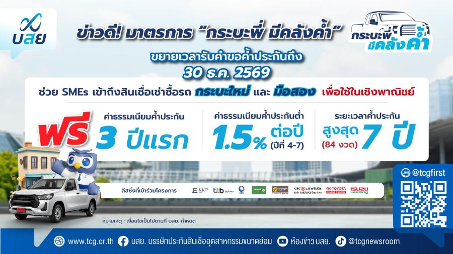 ข่าวดี! ขยายเวลาค้ำประกัน “กระบะพี่ มีคลังค้ำ” ถึง 30 ธ.ค. 69