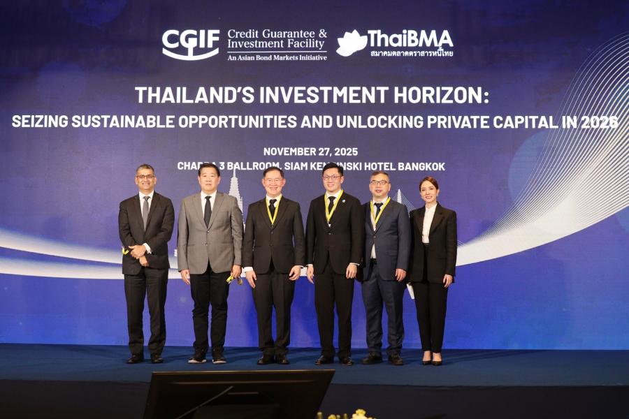 นายทรงพล ชีวะปัญญาโรจน์ เลขาธิการคณะกรรมการกองทุนบำเหน็จบำนาญข้าราชการ (กบข.) ร่วมงานเสวนา “Thailand’s Investment Horizon: Seizing Sustainable Opportunities & Unlocking Private Capital in 2026” ในหัวข้อ “Navigating Growth Private Investment and Funding in a Dynamic Economy” จัดโดย Credit Guarantee and Investment Facility (CGIF) และ สมาคมตลาดตราสารหนี้ไทย (ThaiBMA) เพื่อแลกเปลี่ยนมุมมองเกี่ยวกับการลงทุนและระดมทุนในการขับเคลื่อนเศรษฐกิจอย่างยั่งยืน โดยมีผู้บริหารระดับสูงจากหน่วยงานการเงินและตลาดทุนทั้งในและต่างประเทศ พร้อมทั้งผู้เชี่ยวด้านการลงทุนเข้าร่วมแลกเปลี่ยนความคิดเห็น