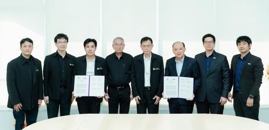 นายพูลพิพัฒน์ ตันธนสิน (ที่ 3 จากขวา) ประธานเจ้าหน้าที่บริหาร บริษัท คิวทีซี เอนเนอร์ยี่ จำกัด (มหาชน) หรือ QTC ผู้ผลิตและจำหน่ายหม้อแปลงไฟฟ้าตามคำสั่งซื้อของลูกค้า (Made to Order)พร้อมด้วย ศ. ดร.ธีรวุฒิ บุณยโสภณ (กลางขวา) นายกสภามหาวิทยาลัย ผศ.ปรีชา อ่องอารี (กลางซ้าย) รองอธิการบดีฝ่ายวางแผนและพัฒนาองค์กร และ ศ. ดร.สุชาติ เซี่ยงฉิน (ที่ 3 จากซ้าย) ผู้อำนวยการอุทยานเทคโนโลยี มหาวิทยาลัยเทคโนโลยีพระจอมเกล้าพระนครเหนือ (มจพ.) ร่วมลงนามบันทึกความเข้าใจ (MOU) เพื่อขับเคลื่อนความร่วมมือทางวิชาการ การวิจัย และนวัตกรรม โดยมุ่งเน้นการพัฒนาเทคโนโลยีล้ำสมัยที่ตอบโจทย์ เป้าหมายการพัฒนาที่ยั่งยืน (SDGs)