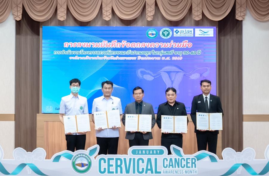 นายธนกร วิทยะสิรินันท์ (ที่ 2 จากขวา) กรรมการ บริษัท วินเนอร์ยี่ เมดิคอล จำกัด (มหาชน) (WINMED) ลงนามต่ออายุบันทึกความเข้าใจ (MOU) ด้านการตรวจคัดกรองมะเร็งปากมดลูกในกลุ่มสตรีอายุ 30–60 ปี กับ นายสุเทพ นาคนาม (กลาง) รองนายกองค์การบริหารส่วน จังหวัดกำแพงเพชร และภาคีเครือข่ายด้านสาธารณสุข เพื่อเดินหน้าขับเคลื่อนการตรวจคัดกรองมะเร็งปากมดลูกเชิงรุกในสตรีอย่างต่อเนื่อง สำหรับการต่ออายุความร่วมมือครั้งนี้ สะท้อนถึงความพร้อมและศักยภาพของ WINMED ในการสนับสนุนเทคโนโลยีการคัดกรองได้มาตรฐาน ช่วยเพิ่มการเข้าถึงบริการ ลดช่องว่างของระบบ และเชื่อมต่อการดูแลรักษาได้อย่างไร้รอยต่อเพราะการดูแลสุขภาพที่ยั่งยืน ต้องใช้เทคโนโลยีที่เหมาะสม รวมกับการบริหารจัดการพื้นที่ที่เข้มแข็ง พร้อมสร้างการเปลี่ยนแปลงจาก “โอกาส” ในการคัดกรอง ไปสู่ “การเข้าถึงอย่างแท้จริง” ซึ่งงานดังกล่าวจัดขึ้น ณ ห้องประชุมชากังราว องค์การบริหารส่วนจังหวัดกำแพงเพชร เมื่อเร็วๆ นี้