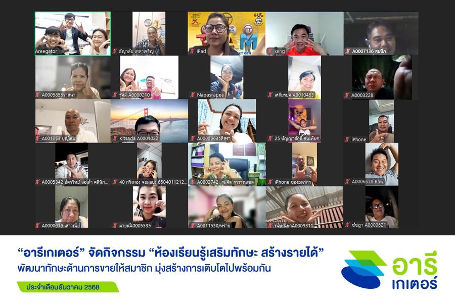 อารีเกเตอร์ (Areegator) แพลตฟอร์มเสนอขายประกันออนไลน์ ภายใต้คอนเซปต์ “จริงใจ เข้าใจ เติบโตไปพร้อมกัน” บริหารโดย บมจ. เงินติดล้อ บริษัทในกลุ่ม Tidlor Holdings (TIDLOR) โดย นายธีระวัฒน์ สาเจริญ ผู้บริหาร สายงานตัวแทน อารีเกเตอร์ นำทีมจัดกิจกรรม “Areegator Monthly’s Classes ห้องเรียนรู้เสริมทักษะ สร้างรายได้” ประจำเดือนธันวาคม 2568 เพื่อพัฒนาทักษะด้านการขายให้สมาชิก มุ่งสร้างการเติบโตไปพร้อมกัน