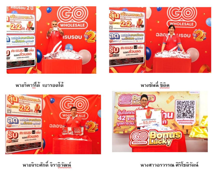 โก โฮลเซลล์ (GO WHOLESALE) ศูนย์ค้าส่งวัตถุดิบอาหาร ที่มีความสดใหม่ตลอดเวลาเพื่อผู้ประกอบการ ภายใต้การดำเนินงานของ บริษัท เซ็นทรัล ฟู้ด โฮลเซลล์ จำกัด ในเครือเซ็นทรัล รีเทล ส่งมอบโชครับปีม้าอย่างต่อเนื่อง โดยเฉพาะแคมเปญที่มี “ทองคำ” เป็นรางวัลไฮไลท์ อย่าง “GO Great Together – โกไม่หยุด คุ้มไม่ยั้ง” ที่จับแจก “ทอง” บัตรกำนัลที่พักหรูจาก Centara Hotels & Resorts และบัตรกำนัล GO WHOLESALE ต่อเนื่องมาถึงแคมเปญ “GO Bonus GO Lucky” ที่มีรางวัลเป็นบัตรกำนัล “ทองคำ”!!! และรางวัลอื่นๆ รวมมูลค่ารางวัลทั้ง 2 แคมเปญกว่า 4.2 ล้านบาท โดยผู้บริหารใจดี นายริคาร์โด้ เบารอตโต้ ประธานเจ้าหน้าที่บริหาร ธุรกิจ เซ็นทรัล ฟู้ด โฮลเซลล์ ประเทศไทย นางซันนี่ ซิดิค รองประธานเจ้าหน้าที่บริหาร สายงานบริหารสินค้าธุรกิจค้าส่ง นายจิระศักดิ์ จิราธิวัฒน์ ผู้ช่วยกรรมการผู้จัดการสายงานการตลาด และ นางสาวอรวรรณ ศิริโชติรัตน์ ผู้ช่วยกรรมการผู้จัดการสายงานสื่อสารองค์กรและรัฐสัมพันธ์ ร่วมกันจับรางวัลส่งต่อความโชคดีอย่างต่อเนื่อง ซึ่ง โก โฮลเซลล์ ได้ทยอยประกาศรายชื่อ ผ่าน https://www.facebook.com/gowholesaleth/?locale=th_TH มาเรื่อยๆ จนข้ามปี เป็นของขวัญรับปีม้าทองกันเลยทีเดียว