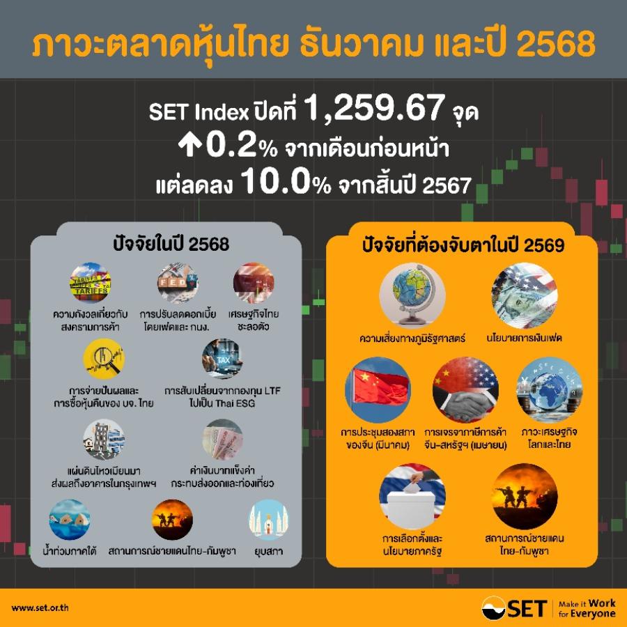 ภาวะตลาดหลักทรัพย์ไทยเดือนธันวาคม และปี 2568