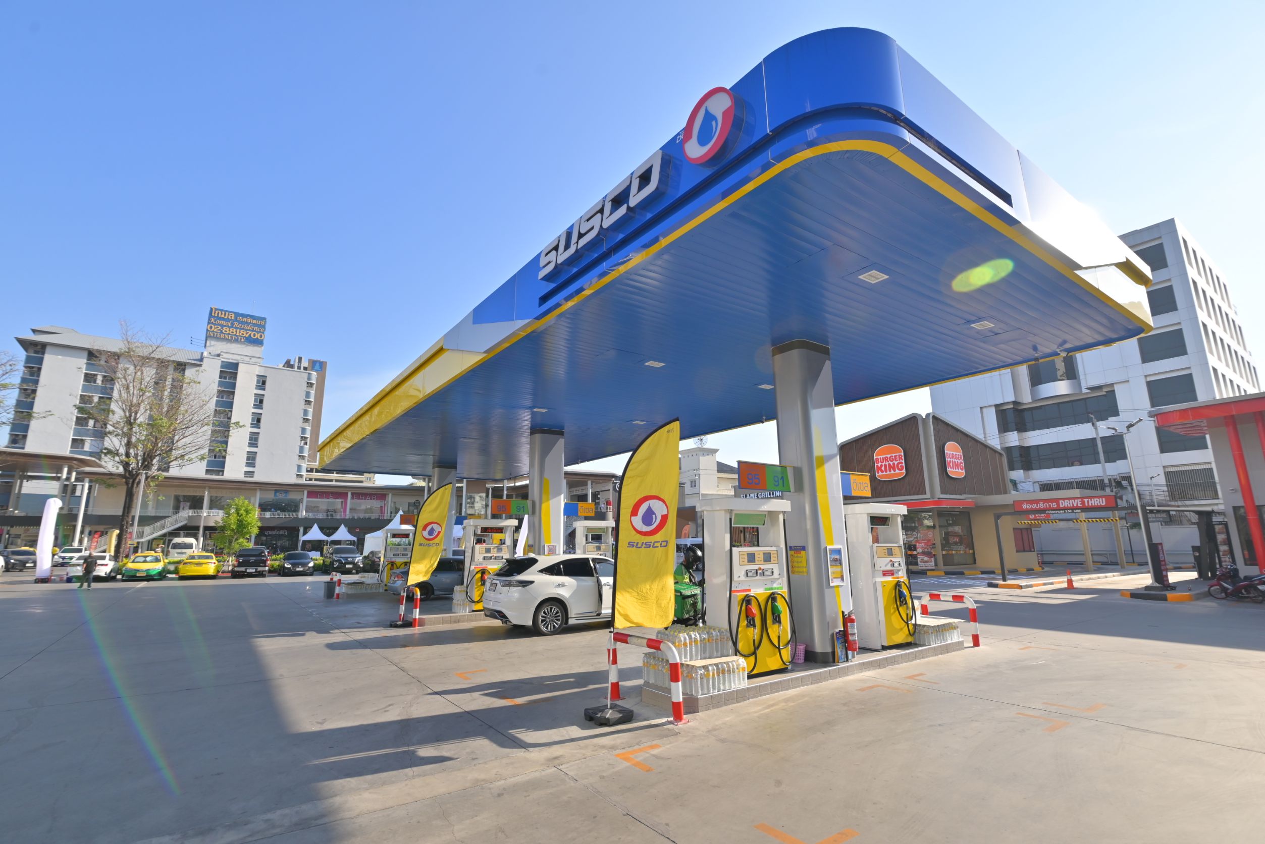 ล่าสุด บริษัทฯ ได้เปิดตัวโครงการคอมมูนิตี้มอลล์ “SUSCO SQUARE สาขาปิ่นเกล้า” อย่างเป็นทางการ เพื่อเพิ่มศักยภาพการให้บริการและดึงดูดผู้ใช้เข้าสู่สถานีบริการอย่างต่อเนื่อง ปัจจุบันเปิดให้บริการแล้วรวมจำนวน 4 สาขา ตั้งอยู่ในเขตกรุงเทพฯ และปริมณฑล ได้แก่ พุทธบูชา ศรีนครินทร์ ลำลูกกา และล่าสุดคือ สาขาปิ่นเกล้า ถือเป็นสาขาที่มีขนาดใหญ่ที่สุด ตั้งอยู่บนพื้นที่ราว 10 ไร่ รองรับการจอดรถได้มากกว่า 200 คัน พร้อมรวบรวมร้านอาหารและบริการจากแบรนด์ดังชั้นนำ อาทิ Lucky Suki Burger King KFC Starbucks Pharmax B-Quik เป็นต้น เพื่อตอบโจทย์การใช้ชีวิตอย่างครบวงจร ซึ่งคาดว่าจะช่วยเพิ่มรายได้ทั้งทางตรงจากยอดจำหน่ายน้ำมันและค่าเช่าพื้นที่ รวมถึงรายได้ทางอ้อมจากการเพิ่มความถี่ในการใช้บริการ การขยายฐานลูกค้า และการเสริมความแข็งแกร่งให้กับแบรนด์ในระยะยาว