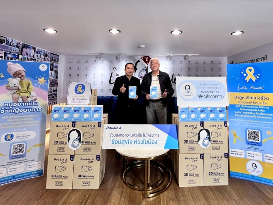 หลังจากดั๊บเบิ้ล เอ ได้จัดโครงการ "ช้อปสุขใจ ห่วงใยน้อง" โดยลูกค้าที่ช้อปสินค้าผ่านเว็บไซต์ Double A Delivery ทุก ๆ 1 การสั่งซื้อ เท่ากับการบริจาคหน้ากากอนามัยสำหรับเด็ก Double A Care 3D Mask Kids จำนวน 1 กล่อง มอบให้กับน้องๆ ในมูลนิธิโรงพยาบาลเด็ก ระหว่างวันที่ 1 ถึง 20 ธันวาคมที่ผ่านมา ซึ่งมีลูกค้าให้ความสนใจเข้าร่วมโครงการฯ ทำให้ได้รับหน้ากากอนามัยฯ สำหรับเด็ก รวมทั้งสิ้นกว่า 300 กล่อง ทั้งนี้ นายชาญวิทย์ จารุสมบัติ กรรมการบริษัท และรองกรรมการผู้จัดการใหญ่ ด้านสื่อสารและภาพลักษณ์องค์กร ดั๊บเบิ้ล เอ เป็นตัวแทนเข้ามอบหน้ากากอนามัยสำหรับเด็ก Double A Care จากโครงการฯ โดยมี นายภาณุวัตร์ ศรีสุวรรณ รองหัวหน้ากลุ่มงานบริษัททั่วไป มูลนิธิโรงพยาบาลเด็ก เป็นผู้แทนรับมอบ เพื่อใช้ป้องกันการแพร่ระบาดของเชื้อไข้หวัดและไวรัสให้กับน้องๆ ที่อยู่ภายใต้การดูแลรักษาของมูลนิธิฯ ซึ่งเป็นเด็กป่วยที่ยากไร้และเด็กที่เป็นโรคยุ่งยากซับซ้อน นับเป็นโครงการที่ลูกค้าดั๊บเบิ้ล เอ ได้ร่วมส่งความห่วงใยในสุขอนามัยและคุณภาพชีวิตที่ดี สร้างสังคมเข้มแข็งอย่างยั่งยืน