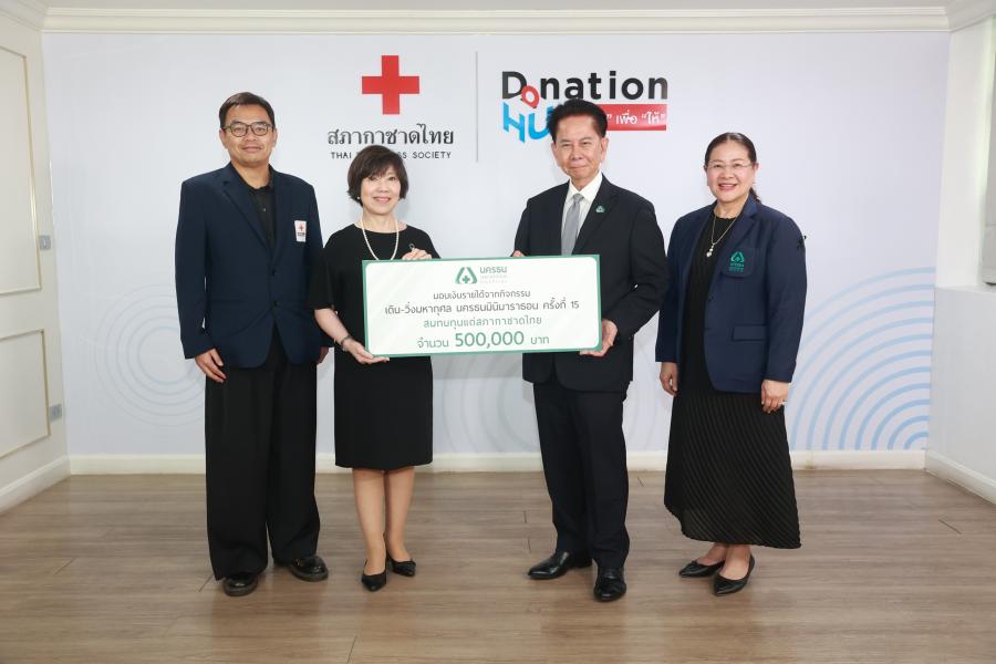 รศ.ญาณเดช ทองสิมา (ที่ 2 จากขวา) ประธานกรรมการบริษัท พร้อมด้วยนางสาวเยาวเรศ ทองสิมา (ขวา) ผู้อำนวยการสายงานบริหาร บริษัท โรงพยาบาลนครธน จำกัด (มหาชน) (NKT) มอบเงินรายได้จากการจัดกิจกรรมเดิน-วิ่งมหากุศล นครธนมินิมาราธอน ครั้งที่ 15 ภายใต้แนวคิด “วิ่งด้วยความรัก เพื่อสภากาชาดไทย : Save The World" จำนวน 500000 บาท โดยมีนางจันทร์ประภา วิชิตชลชัย (ที่ 2 จากซ้าย) รองผู้อำนวยการสำนักงานจัดหารายได้ สภากาชาดไทย ให้เกียรติเป็นผู้รับมอบในครั้งนี้ เพื่อสมทบทุนให้กับโครงการเงินทุนฉุกเฉิน เพื่อช่วยเหลือผู้ประสบภัยพิบัติ ซึ่งเป็นหนึ่งในพันธกิจหลักของสภากาชาดไทย ในการช่วยเหลือบรรเทาทุกข์ ผู้ประสบภัยพิบัติทั่วประเทศให้ได้อย่างรวดเร็ว และงานดังกล่าวจัดขึ้น ณ สำนักงานจัดหารายได้ สภากาชาดไทย เมื่อเร็วๆ นี้
