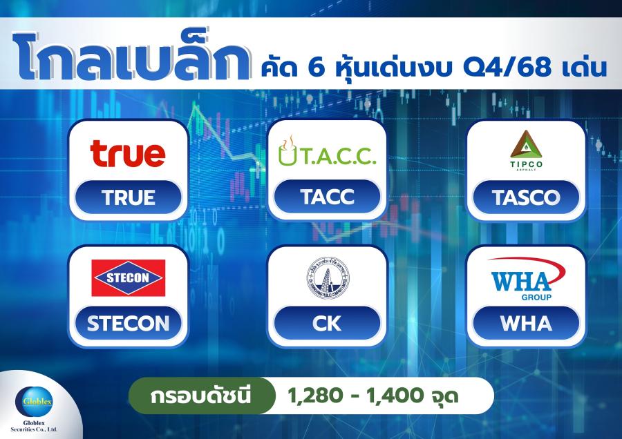 “โกลเบล็ก” ชี้หุ้นไทยเดือน ก.พ. คึก รับแรงหนุนรัฐบาลใหม่ แนะกลยุทธ์ลงทุน 6 หุ้นเด่นงบ Q4/68 เด่น