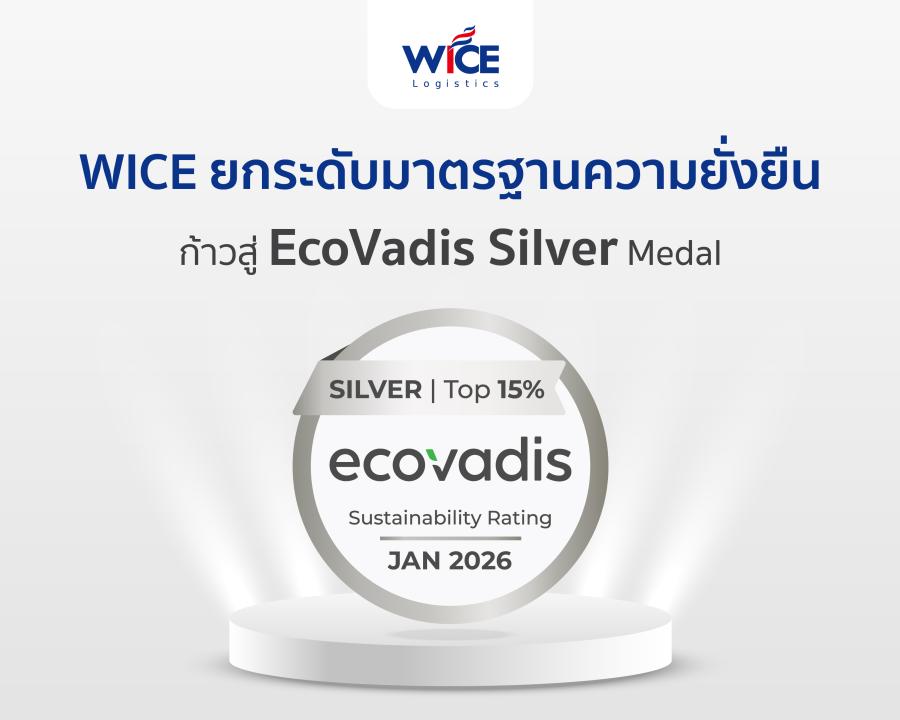 บมจ. ไวส์ โลจิสติกส์ หรือ WICE ยกระดับความยั่งยืน ได้รับการประเมินระดับ Silver จาก EcoVadis องค์กรประเมินความยั่งยืนทางธุรกิจระดับสากล ตอกย้ำศักยภาพผู้นำอุตสาหกรรมโลจิสติกส์ระดับภูมิภาค มุ่งพัฒนามาตรฐานการให้บริการขนส่ง ควบคู่กับการดำเนินงานด้าน ESG แข็งแกร่ง พร้อมสร้าง Green Ecosystem เสริมธุรกิจ เน้นให้ความสำคัญด้านสิ่งแวดล้อมอย่างยั่งยืน
