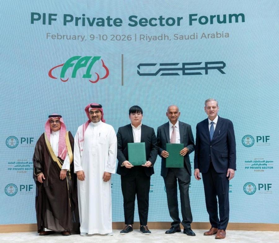 นายณพวิทย์ ธนาดำรงศักดิ์ (ที่ 3 จากขวา) กรรมการผู้จัดการ บริษัท Fortune Parts Industry Gulf Co. Ltd. (FPI) ลงนามในสัญญาเป็นซัพพลายเออร์กับ CEER ผู้ผลิตยานยนต์ไฟฟ้า (EV) รายแรกของซาอุดีอาระเบีย ซึ่งก่อตั้งโดยกองทุนเพื่อการลงทุนสาธารณะ (Public Investment Fund: PIF) ร่วมกับ Foxconn