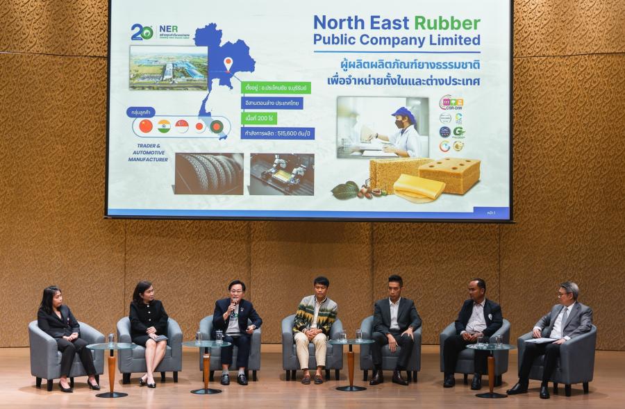 นายศักดิ์ชัย จงสถาพงษ์พันธ์ รองประธานเจ้าหน้าที่บริหารสายงานบริหารบัญชีและการเงิน บริษัท นอร์ทอีส รับเบอร์ จำกัด (มหาชน) หรือ NER ผู้ผลิตผลิตภัณฑ์ยางธรรมชาติจากอำเภอประโคนชัย จังหวัดบุรีรัมย์ เป็นตัวแทนบริษัทเข้าร่วมเวทีเสวนาแลกเปลี่ยนประสบการณ์ ในงาน “สานพลังเอกชนขับเคลื่อนเศรษฐกิจและสังคมจากฐานรากสู่ความยั่งยืน ปีที่ 3” ภายใต้หัวข้อ “จากมาตรการ CSR ต่อยอดสู่สังคมที่ยั่งยืน” เพื่อถ่ายทอดผลสำเร็จจากการดำเนินโครงการตามมาตรการส่งเสริมการลงทุนเพื่อพัฒนาชุมชนและสังคม (BOI-CSR) ภายในเวทีเสวนา NER ได้แบ่งปันแนวทางการดำเนินโครงการเพื่อสังคมที่มุ่งสร้างความเข้มแข็งให้กับชุมชนและเกษตรกรในพื้นที่ โดยให้ความสำคัญกับชุมชนในฐานะฐานรากสำคัญของความยั่งยืน ผ่านการขับเคลื่อนโครงการใน 3 ด้านหลัก ได้แก่ ด้านการเกษตร สาธารณสุข การศึกษา