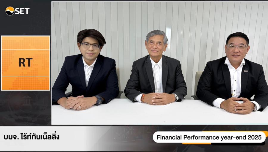 นายชวลิต ถนอมถิ่น (กลาง) ประธานเจ้าหน้าที่บริหาร นายไชยา วงศ์ลาภพานิช (ขวา) กรรมการผู้จัดการ และ นายปรเมษฐ์ มัชฌิมา (ซ้าย) ผู้ช่วยกรรมการผู้จัดการสายงานบัญชีและการเงิน บมจ. ไร้ท์ทันเน็ลลิ่ง (RT) ให้ข้อมูลสรุปผลประกอบการไตรมาส 4/68 รายได้รวม 938 ล้านบาท กำไรสุทธิ 54 ล้านบาท โต 350% พร้อมทิศทางธุรกิจปี 69 ขับเคลื่อนการเติบโตอย่างมีประสิทธิภาพ เข้าร่วมโครงการ JUMP ของตลาดหลักทรัพย์ฯ ยกระดับศักยภาพองค์กร เตรียมเข้าร่วมประมูลงานมูลค่ารวม 20000 ล้านบาท ในงานบริษัทจดทะเบียนพบผู้ลงทุน (Opportunity Day) จัดโดยตลาดหลักทรัพย์แห่งประเทศไทย