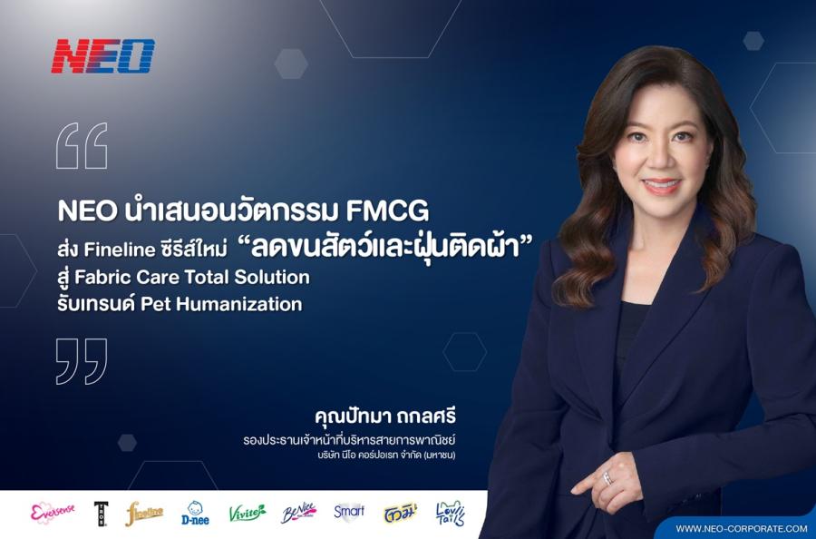 บริษัท นีโอ คอร์ปอเรท จำกัด (มหาชน) (NEO) เดินหน้าตอกย้ำบทบาท Segment Creator ในตลาดผลิตภัณฑ์ดูแลผ้า (Fabric Care) ด้วยการพัฒนานวัตกรรมที่ช่วยลดการเกาะติดของขนสัตว์และฝุ่นบนเนื้อผ้า ซึ่งเป็นหนึ่งใน Pain Point สำคัญของผู้บริโภคยุคใหม่ โดยเฉพาะกลุ่มครอบครัวคนเมืองและคนรักสัตว์เลี้ยง ผ่านการต่อยอดผลิตภัณฑ์ Fineline Premium Care Series หนึ่งในนวัตกรรมสำคัญของบริษัท สู่แนวคิด Fabric Care Total Solution ดูแลผ้าครบทุกขั้นตอน ที่ออกแบบมาเพื่อยกระดับมาตรฐานการดูแลเสื้อผ้าให้ตอบโจทย์ไลฟ์สไตล์ยุค Pet Humanization และการดูแลผ้าในชีวิตประจำวัน