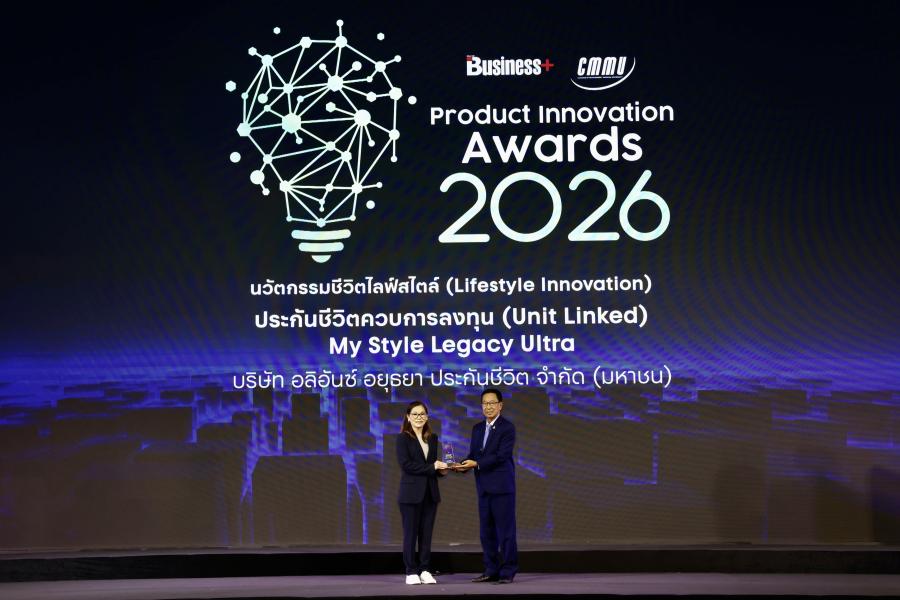 บมจ. อลิอันซ์ อยุธยา ประกันชีวิต นำโดย นางสาวพบพร พิพัฒน์สาธุกิจ ผู้อำนวยการอาวุโส ฝ่ายธุรกิจยูนิต ลิงค์ คว้ารางวัล “สุดยอดนวัตกรรมสินค้าและบริการแห่งปี พ.ศ. 2569 BUSINESS PRODUCT INNOVATION AWARDS 2026 กลุ่มนวัตกรรมชีวิตไลฟ์สไตล์ ผลิตภัณฑ์ประกันชีวิตควบการลงทุน (Unit Linked) “My Style Legcy ULTRA” ผลิตภัณฑ์ที่ออกแบบมาเพื่อตอบโจทย์ลูกค้ากลุ่มไฮเน็ตเวิร์ธ วางแผนการส่งต่อความมั่งคั่งที่มั่นคงให้คนที่รัก ความคุ้มครองชีวิตเริ่มต้น 10 ล้านบาท และสามารถเพิ่มโอกาสรับผลตอบแทนสูงขึ้นผ่านการ Top-Up วางแผนได้ตามเป้าหมาย มีความยืดหยุ่นในปรับเพิ่มลดความคุ้มครองชีวิต เป็นอีกหนึ่งแผนประกันจาก Ultra series ที่ได้รับเสียงตอบรับที่ดีอย่างมาก โดยได้รับเกียรติจาก ฯพณฯ นุรักษ์ มาประณีต องคมนตรี เป็นประธานมอบรางวัล ณ ห้องบอลรูม โรงแรมอินเตอร์คอนติเนนตัล กรุงเทพ