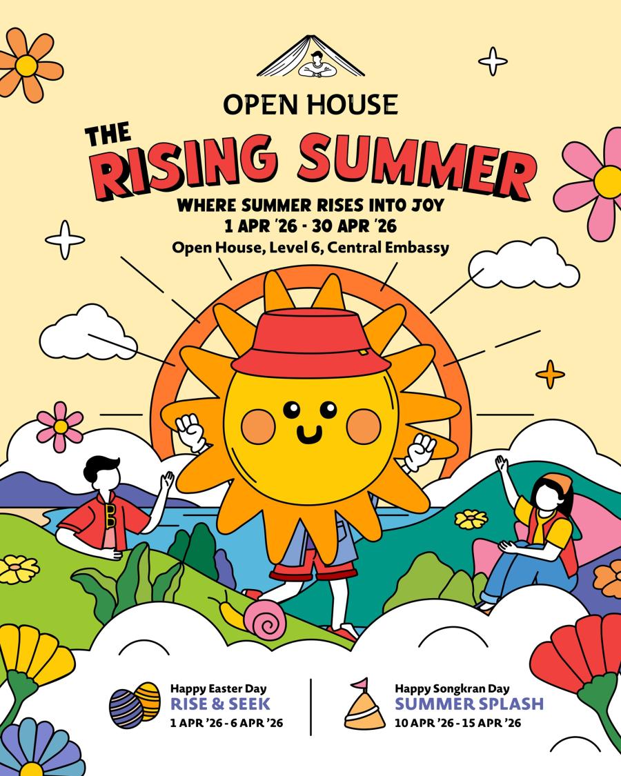 Open House (โอเพน เฮ้าส์) Co-Working Space ใจกลางกรุง ชั้น 6 ศูนย์การค้าเซ็นทรัล เอ็มบาสซี เตรียมเปิดพื้นที่ให้กลายเป็นดินแดนแห่งความสนุกและแรงบันดาลใจในงาน “THE RISING SUMMER – WHERE SUMMER RISES INTO JOY” ตลอดเดือนเมษายน 2026 นี้ โดยปีนี้พิเศษสุดกับการเปิดตัวคาแรคเตอร์ "น้องซันซัน" (Sun Sun) ตัวแทนความสดใสที่จะมาชวนทุกคนออกมารับพลังบวกและสร้างความทรงจำดีๆ ร่วมกัน พบกิจกรรมที่สร้างรอยยิ้มได้ตลอดทั้งเดือน ไม่ว่าจะเป็น Kites on the Rise ปล่อยจินตนาการให้ล่องลอยไปกับเวิร์กช็อปประดิษฐ์ว่าวรูปทรงแมลงหลากสีสัน สะท้อนความสดใสของธรรมชาติในฤดูร้อน และ The Rising Music Stage เติมเต็มความละมุนด้วยเสียงเพลงจากวงดนตรีสดที่จะมาสร้าง Vibe สุดชิลล์ให้หน้าร้อนนี้อบอวลไปด้วยพลังแห่งความสุข ทุกวันเสาร์-อาทิตย์ นอกจากนี้ยังพบกับกิจกรรมไฮไลต์ อื่นๆ ไม่ว่าจะเป็น