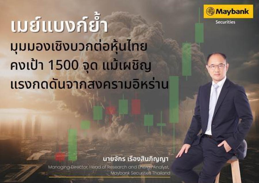 บริษัท หลักทรัพย์ เมย์แบงก์ (ประเทศไทย)จำกัด (มหาชน) ยังคงมุมมองเชิงบวกต่อตลาดหุ้นไทย โดยคงเป้าหมายดัชนี SET สิ้นปี 2569 ที่ระดับ 1500 จุด อิงจากค่า P/E เป้าหมายที่ 16 เท่า แม้สถานการณ์ความตึงเครียดในตะวันออกกลาง โดยเฉพาะสงครามในอิหร่าน จะเป็นปัจจัยเสี่ยงต่อแนวโน้มตลาดในระยะสั้น แต่การวิเคราะห์ของเมย์แบงก์ชี้ว่าเศรษฐกิจไทยยังมีศักยภาพในการรับมือ โดยเฉพาะในด้านการบริหารจัดการพลังงาน และแนวโน้มการฟื้นตัวจากแรงขับเคลื่อนเชิงนโยบายของภาครัฐ
