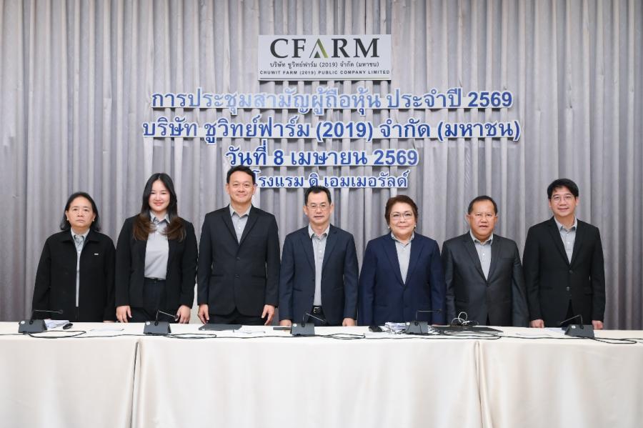 นายเทพกุล พูลลาภ ประธานกรรมการ และนายชูรัตน์ จึงธนสมบูรณ์ กรรมการผู้จัดการ พร้อมด้วยคณะกรรมการบริษัทฯ บริษัท ชูวิทย์ ฟาร์ม (2019) จำกัด (มหาชน) หรือ CFARM ประกอบธุรกิจฟาร์มเลี้ยงไก่เนื้อในรูปแบบเกษตรพันธสัญญา เปิดเผยว่าที่ประชุมสามัญผู้ถือหุ้นประจำปี 2569 โดยเป็นการประชุมรูปแบบ Hybrid เพื่อรับทราบผลการดำเนินงานประจำปี 2568 คณะกรรมการบริษัทมีมติอนุมัติการจ่ายเงินปันผลจากผลการดำเนินงานประจำปี 2568 และกำไรสะสม ในอัตราหุ้นละ 0.02 บาท คิดเป็นมูลค่ารวมทั้งสิ้นประมาณ 11.6 ล้านบาท ทั้งนี้ บริษัทกำหนดรายชื่อผู้ถือหุ้นที่มีสิทธิได้รับเงินปันผล (Record Date) ในวันที่ 20 เมษายน 2569 และกำหนดจ่ายเงินปันผลในวันที่ 7 พฤษภาคม 2569