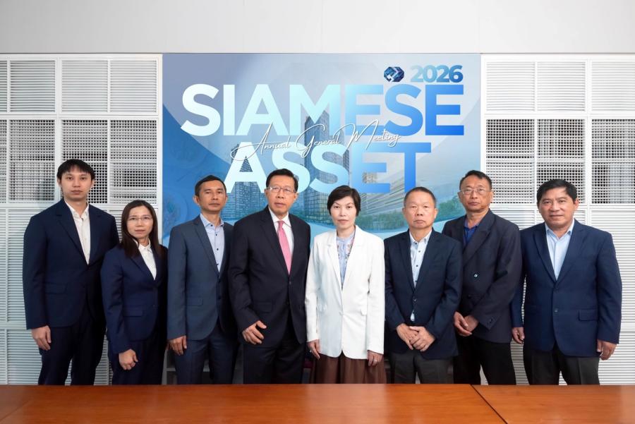 คุณวรพล โสคติยานุรักษ์ (ที่ 4 จากซ้าย) ประธานกรรมการ คุณขจรศิษฐ์ สิ่งสรรเสริญ (ที่ 3 จากขวา) ประธานเจ้าหน้าที่บริหาร และคุณสุนันทา สิ่งสรรเสริญ (ที่ 4 จากขวา) ประธานเจ้าหน้าที่บริหารร่วม พร้อมด้วยคณะกรรมการและผู้บริหาร บริษัท ไซมิส แอสเสท จำกัด (มหาชน) (SA) ถ่ายภาพร่วมกันภายหลังจัดประชุมสามัญผู้ถือหุ้นประจำปี 2569 ผ่านสื่ออิเล็กทรอนิกส์ (E-AGM) โดยที่ประชุมมีมติเห็นชอบทุกวาระตามที่คณะกรรมการเสนอ พร้อมรายงานและนำเสนอข้อมูลผลการดำเนินงานของปี 2568 นอกจากนี้ ที่ประชุมยังมีมติอนุมัติการเพิ่มวัตถุประสงค์ในการประกอบกิจการเกี่ยวกับการเกษตร เพื่อสนับสนุนธุรกิจอาหารและเครื่องดื่ม (F&B) ของบริษัท และส่งเสริมการดำเนินธุรกิจตามแนวทางความยั่งยืนขององค์กร ให้ผู้ถือหุ้นรับทราบ ซึ่งกิจกรรมดังกล่าวจัดขึ้น ณ สำนักงานใหญ่ของบริษัทฯ กรุงเทพ เมื่อเร็วๆ นี้